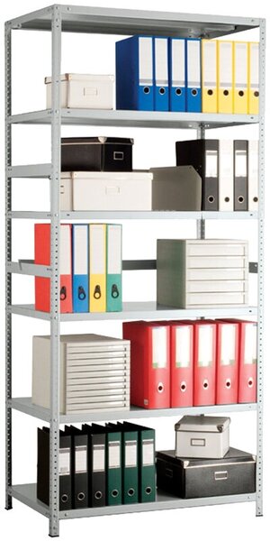 два вида усилителя стоек и полок: Г-образный, сборка осуществляется с использованием резьбового крепежа (болты и гайки), и Т-образный, сборка без гаек. Комплекты стеллажей собираются при помощи болтов;
